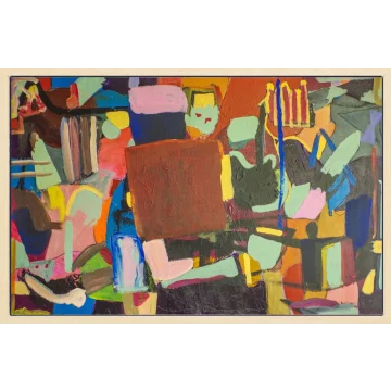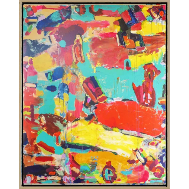 Acrylic and oil paint on preprocessed wooden panel in wooden frame.