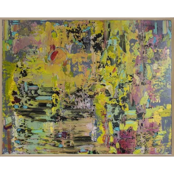 Acrylic and oil paint on preprocessed wooden panel in wooden frame.