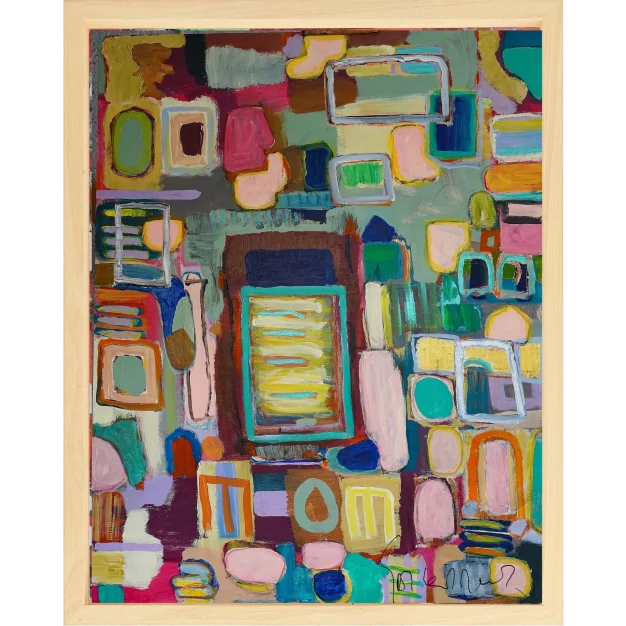 Acrylic and oil paint on preprocessed wooden panel in wooden frame.