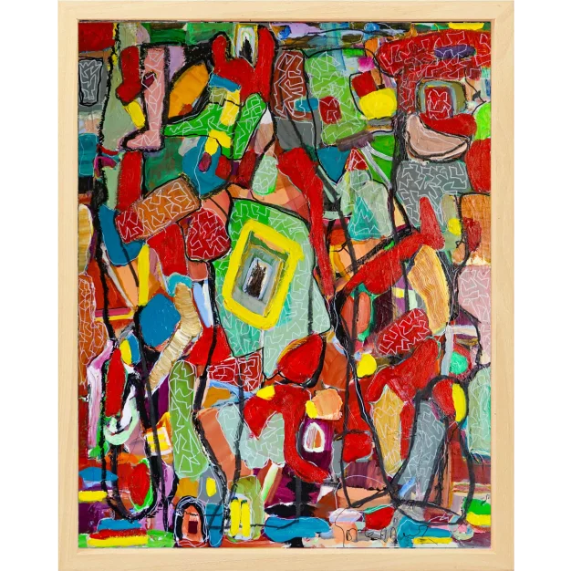 Acrylic and oil paint on preprocessed wooden panel in wooden frame.