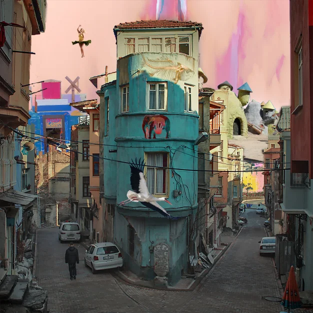 As most of the time, this artwork is a combination of painting, photography and digital post processing.