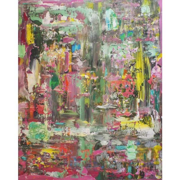 Acrylic and oil paint on preprocessed wooden panel in wooden frame.