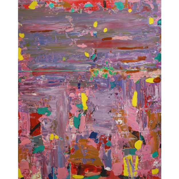 Acrylic and oil paint and gouache on preprocessed hardwood panel in wooden frame.