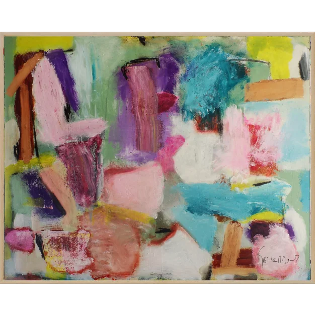 Acrylic and oil paint on preprocessed wooden panel in wooden frame.