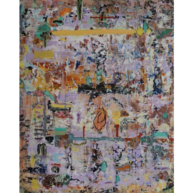 Acrylic and oil paint on preprocessed wooden panel in wooden frame