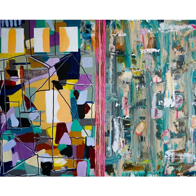 Acrylic and oil paint on preprocessed wooden panel in wooden frame